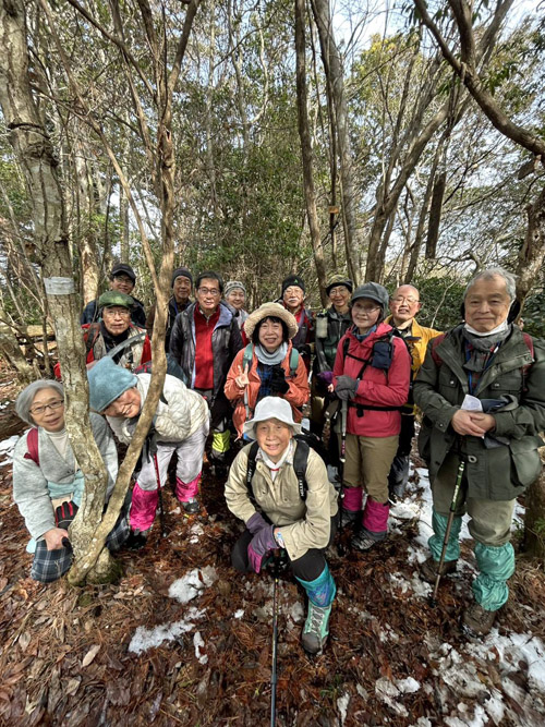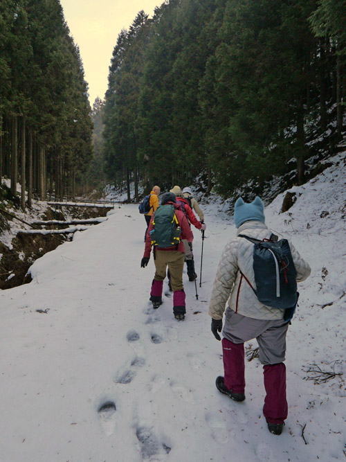 「雲ヶ畑山歩き俱楽部」の2月例会に参加。京都北山の惣谷(そうだん)林道から惣谷山へ。さらに林道を詰めてオ梅谷林道を下りました。