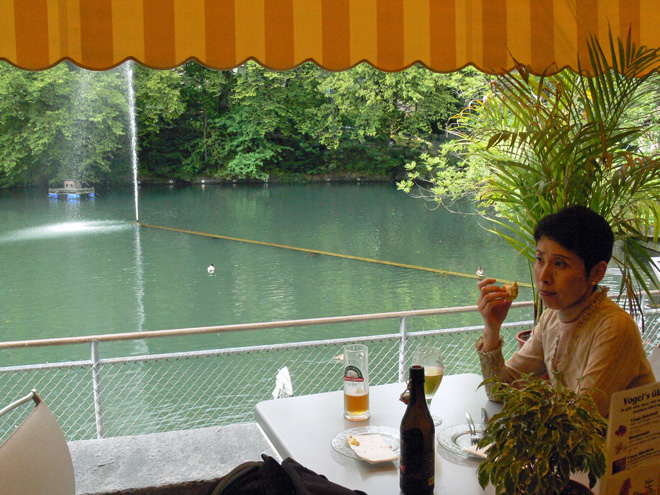 わたしたちは、安上がりにCOOPで仕入れてきたパンにチーズやハムを重ねて食べました。ホテルの朝食の食堂からいただいてきた果物やバターも加わって、おししい昼食でした。