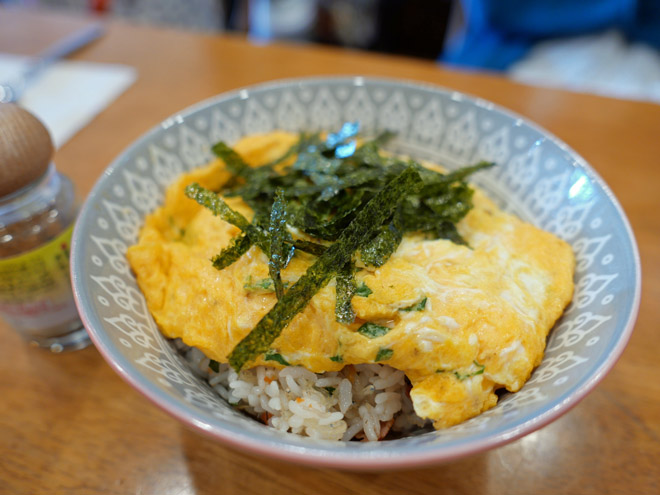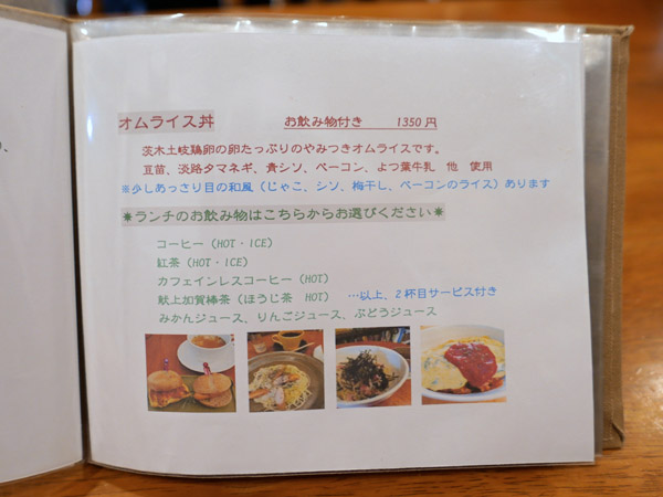 高槻での要件が長引いて、昼を過ぎました。奥さまがお薦めの「手作り菓子と音楽教室 歌笛堂(かふぇどう)」で「オムライス丼」(1350円)をいだきました。