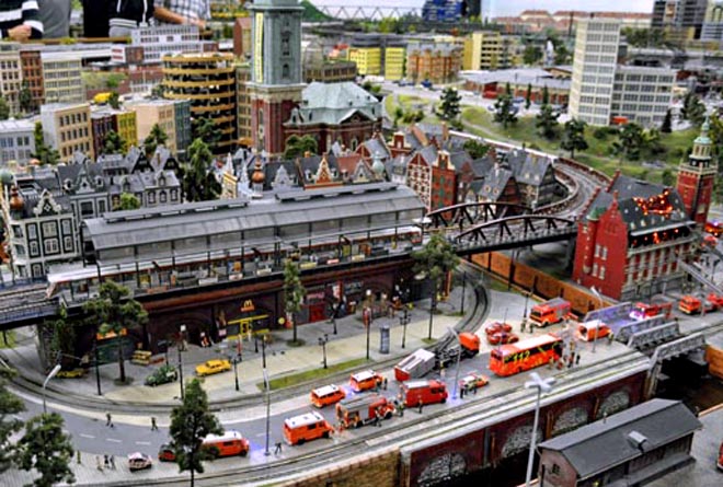 鉄ちゃんにとって見逃せないのが、HOゲージの鉄道ジオラマが広がるミニチュアワンダーランドでした。