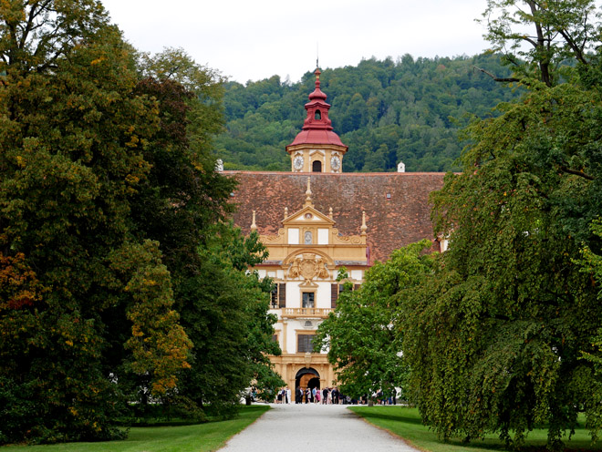 エッゲンベルク城には、豊臣期に制作された大坂城を中心とした町の様子が描かれた屏風が、壁紙となって残っています。
