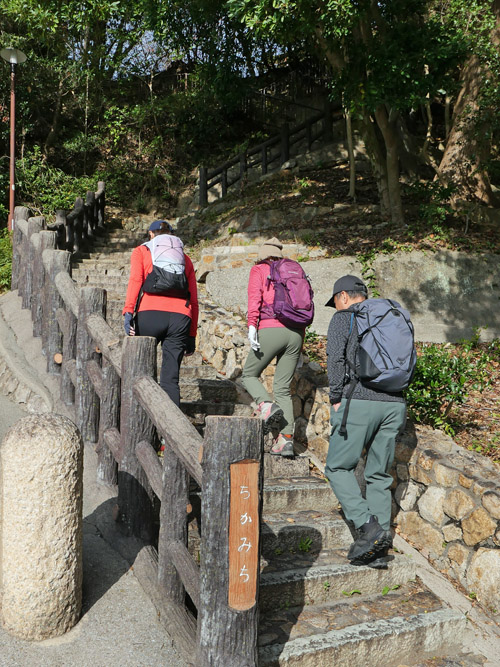「ちかみち」を進みます。いきなり急階段の連続で息があがります。