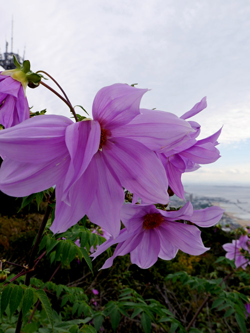 皇帝ダリアンの小型品種でしょうか。薄紫の花をいっぱいにつけていました。
