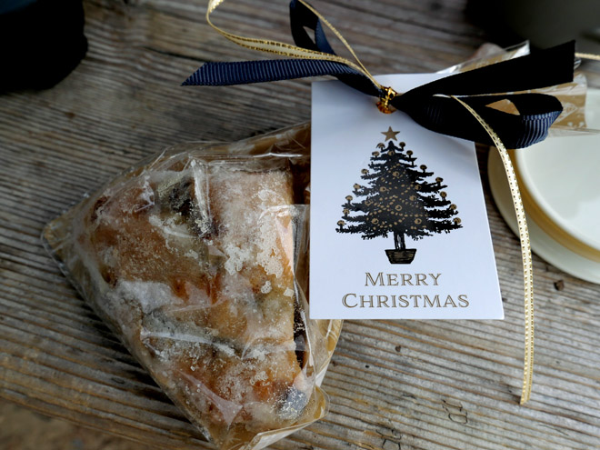 恒例のおやつ交換会です。わたしは途中の阪急・十三のパン屋でシュトレンを買ってきました。