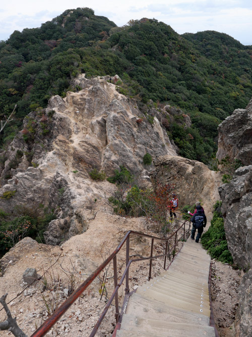 住宅地を抜けて登りのスタートです。急階を登り返すルートは敬遠しました、