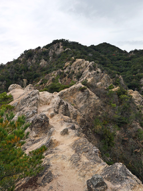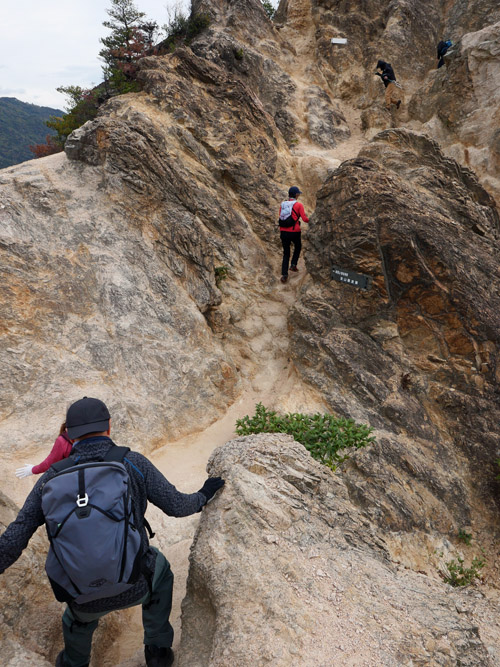 ナイフリッジというほどでもありませんが、切れたった岩場を進みます。