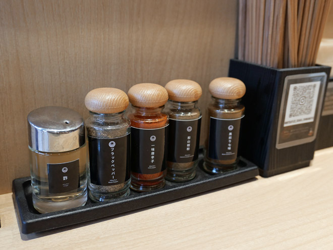 スパイスが並んでいます。「和山椒粉」を振りかけてみましら。爽やかな香りが広がりました。