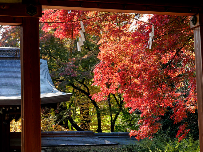 京電が走った寺町を下りました。梨木神社境内の紅葉が真っ赤に色づいてました。