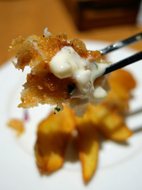 サクッと揚がったフィッシュ&チップスです。タラの半身がそのまま揚がっているようです。