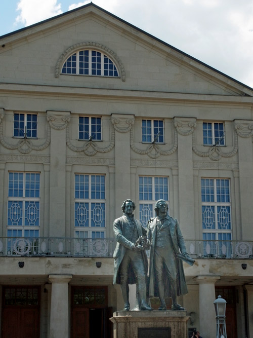 ワイマール憲法が制定された国民劇場の前には、ゲーテとシラーの像が立っていました。