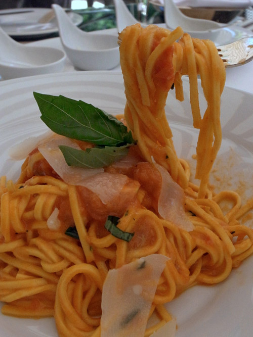 町の中心、マルクト広場に面したホテル・エレファントの中庭のテラスでいただいたBandnudeln(リボンパスタ)です。こってりと濃厚味でした。