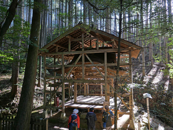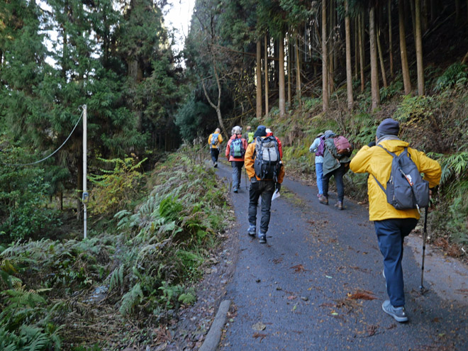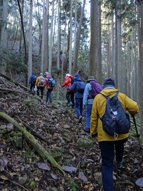 林道を外れて杉林の山道となります。幅は1メートルほどと広く、荷車が行き来したそうです。