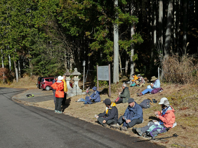 氷室神社の前で昼食としました。穏やかな陽だまりでした。