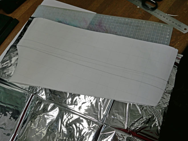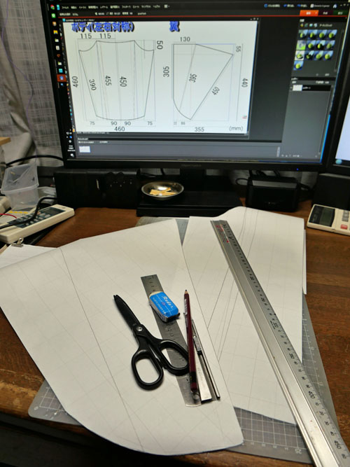 ネットで調べた設計図を頼りに、方眼紙で型紙を作ります。