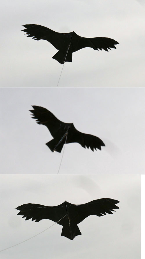 糸をグイグイと引くと、羽ばたきながら舞い上がります。