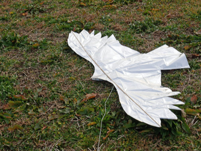 失敗は、骨組みがかたすぎたようで、思ったようには羽ばたいてくれません。