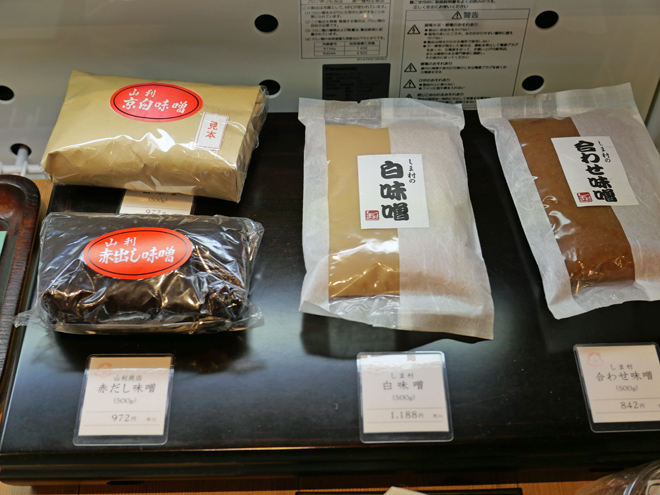 錦市場の麩嘉です。生麩の専門店ですが、いくつかのメーカーの味噌なども並んでいます。わが家は決まって山利の京白味噌です。正月の雑煮はこれがなくては始まりません。
