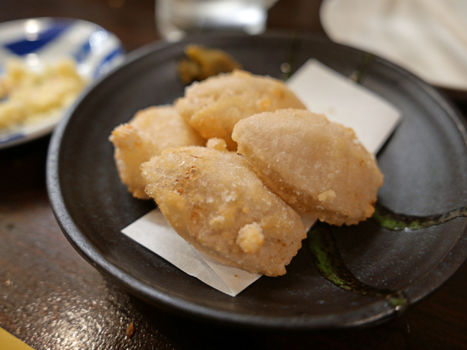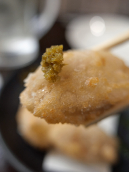 カリッと揚がったのに柚子胡椒をつけていただきます。