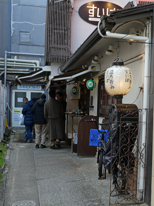 年末恒例の買い物で京都・錦市場へ行きました。用を済ませると、昼飯を兼ねて裏寺町の「立ち呑み すいば」へ。