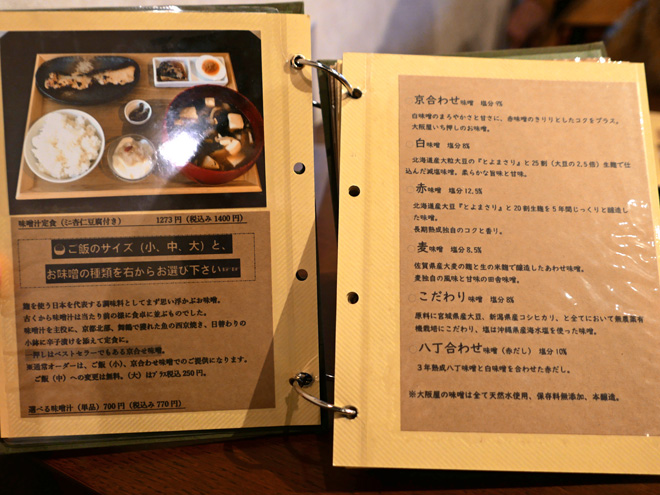 大きな椀に入った温かなみそ汁がメーンの「味噌汁定食」(1400円)をいただきました。京都。岡崎にある大阪屋こうじ店三条神宮道店に併設されている糀屋Cafeです。