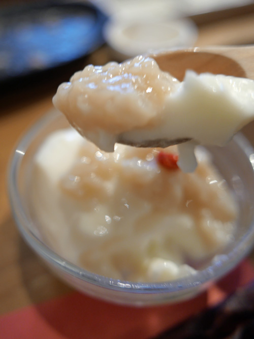 デザートの杏仁豆腐には甘酒の素がトッピングされていました。