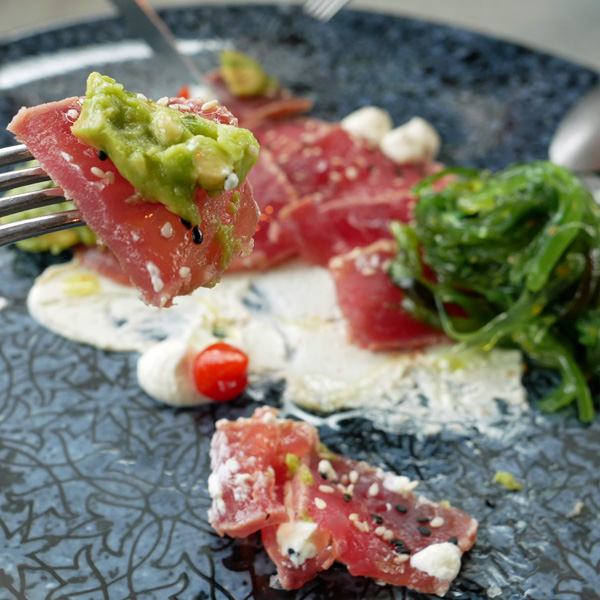 「Tuna tataki」。メニューをみて、即座にこれにきめました。ツナ(マグロ)にアボカド、ワサビにワカメ。全部、理解できました。