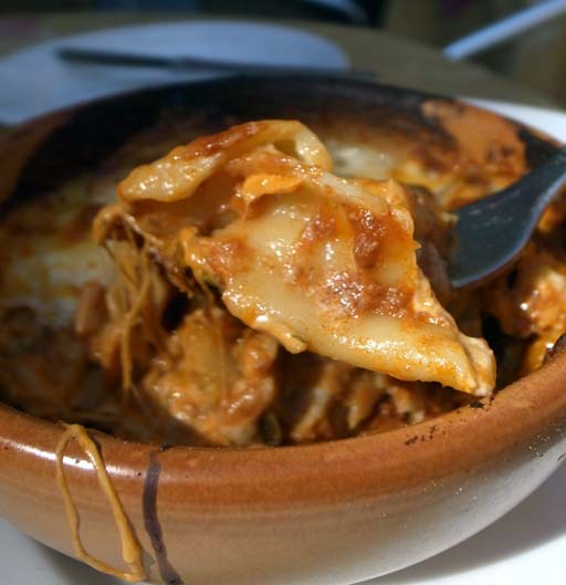 ひとり旅で最初に訪れたときには、旧市街のテントの下でラザニアとビールでした。