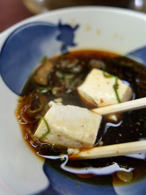 湯豆腐を頼みました。カウンターの上にミニコンロを置いて、その上で温めてくれます。ビールを片手に、まだかなと待つのも楽しみです。