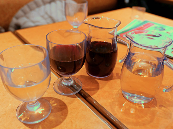 本命はこちら、赤と白の「デカンタ小(250ml)」です。これが200円ぽっきりとはたまりません。調子にのってこの4分の3はわたしののどを流れました。