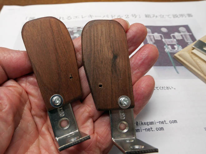 パドルのツマミ部分です。お手本ではアクリル板を切り抜いているようです。でもそんな技は持ち合わせていません。