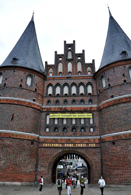 ハンザ同盟の盟主として栄えたリューベックです。15世紀にできた城門のホルステン門は、重さから地盤沈下して傾いています。
