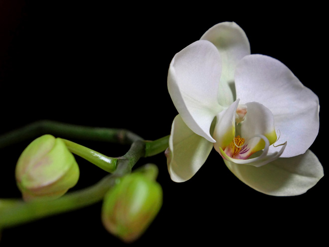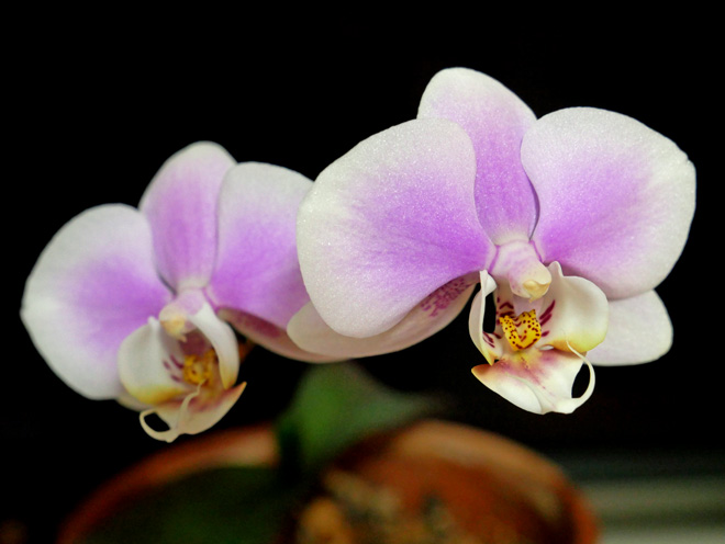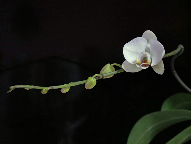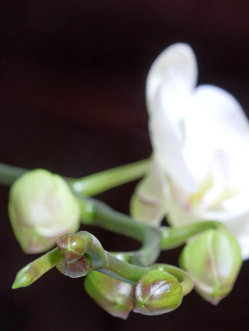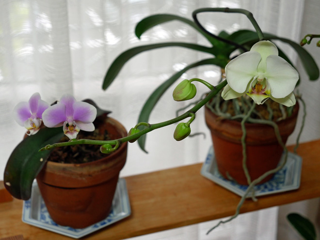 わが家の胡蝶蘭 2026-2 遅れた白い大輪 白い大輪の胡蝶蘭が、やっと開花しました。例年なら、薄紫の小ぶりの株よりも先に咲きます。ことしは逆転してますので、大輪の株との比較なら1~2か月も遅くなりました。 マンションが大規模修繕中で黒いシートですっぽりと覆われています。寒さもありますが、窓が暗いのも影響したのでしょう。 小ぶりの方は姉妹が並んでいます。 蕾は7個つけています。 他の株も開花準備中です。当分は窓辺がにぎやかです。