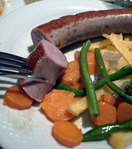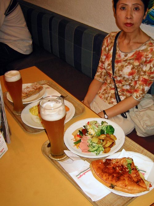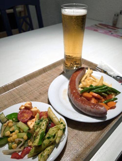 3度目のウィーンでは奥さまたちとは別行動も。独りでいただたランチです。ソーセージやペンネ、野菜類をビュッフェカウンターから好きなだけ皿に盛ってきました。