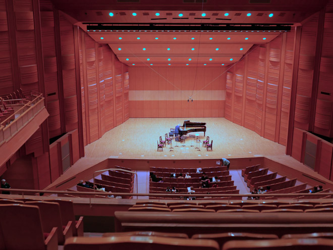 この夜のプログラムには、樫本はもとよりベルリン・フィルの首席フルーティスト、エマニュエル・パユらも登場。モーツァルトとショスタコーヴィチらの作品が並びました。