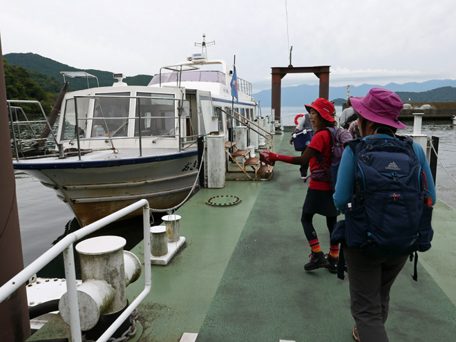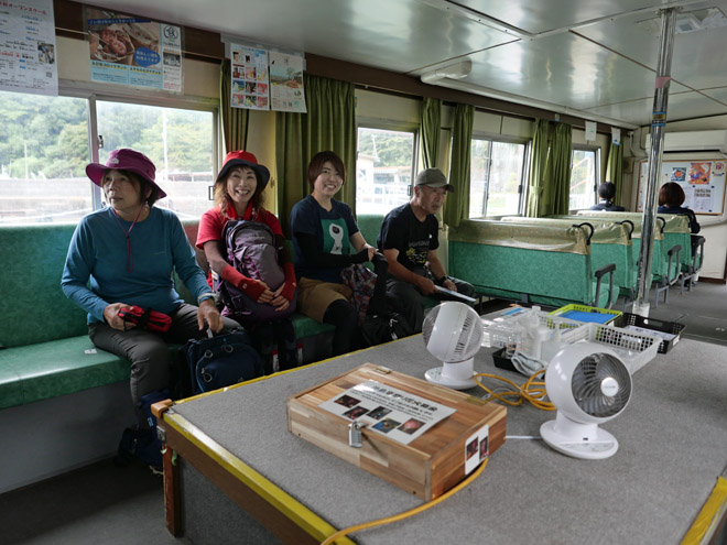 三田からとわたしの車との2台でやってきました。堀切港から沖島への渡船に乗りました。