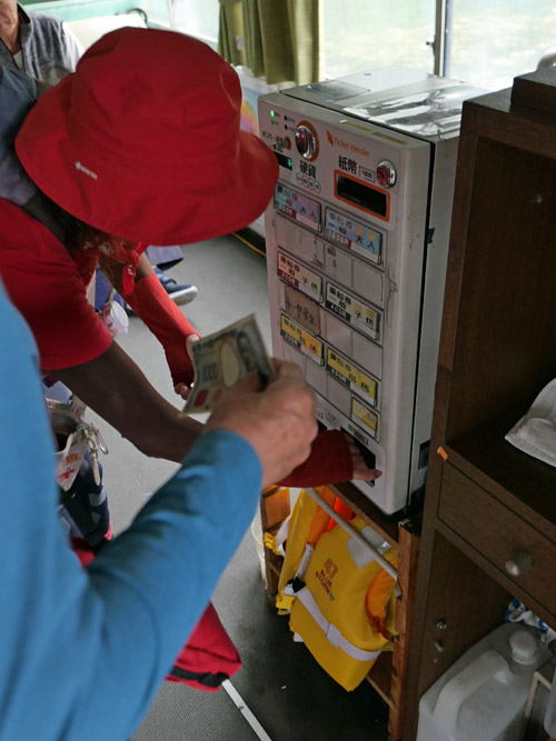 沖島に自動車は存在しません。移動手段は3輪自転車です。サドルを保護するために、そろって缶で覆っています。