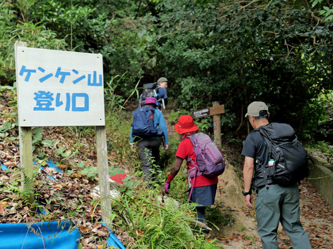 ケンケンでも登れる低い山のことかとバカにしていたら、険険山というほど厳しい岩山だったそうです。