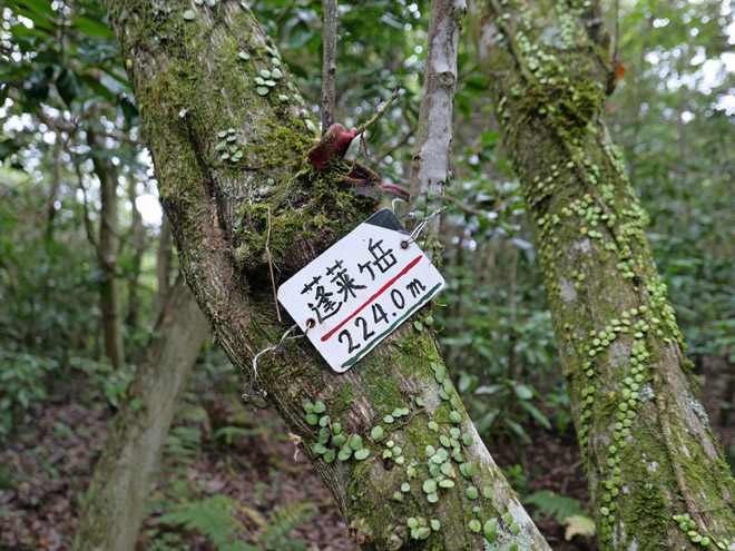 224mにしては立派な名をもつ蓬莱ヶ岳のプレートを見て、尾山を通り過ぎたことに気づきました。