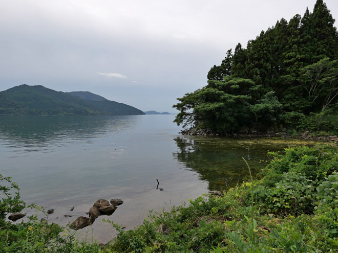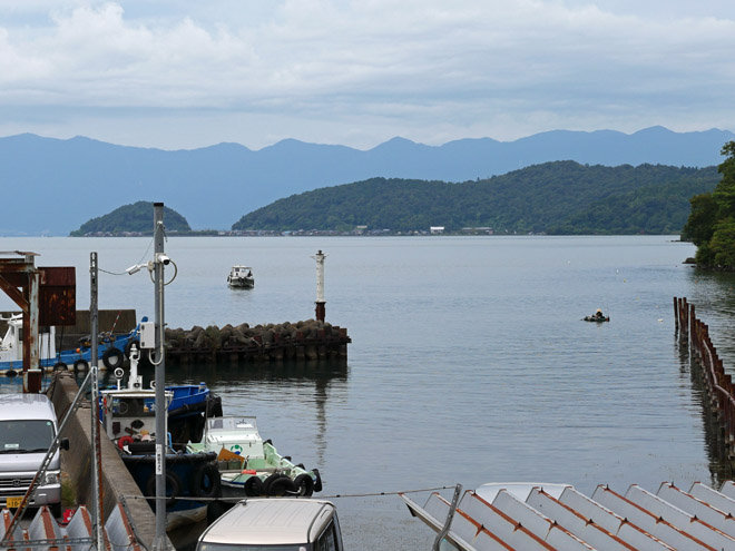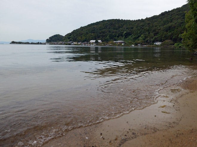 静かな湖面です。向こうに近江八幡の休暇村が見えます。