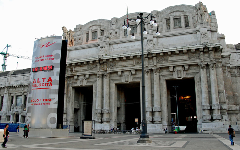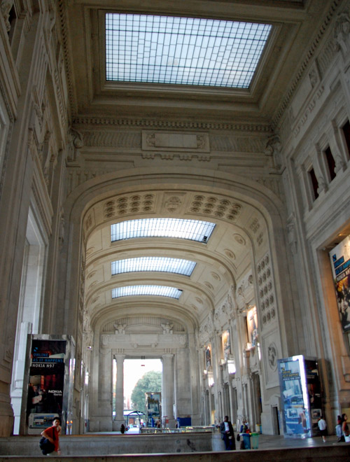 ガッレリア(Galleria)は、イタリア語でギャラリー(Gallery)のこと。ミラノ・チェントラーレ(中央駅)の最前部は「ガッレリア・デッレ・カロッツェ」と呼ばれるアーケード式の車寄せだったが、現在はコンコースになっています。幅200m、天井高は72mに達し、まるで美術館のようです。
