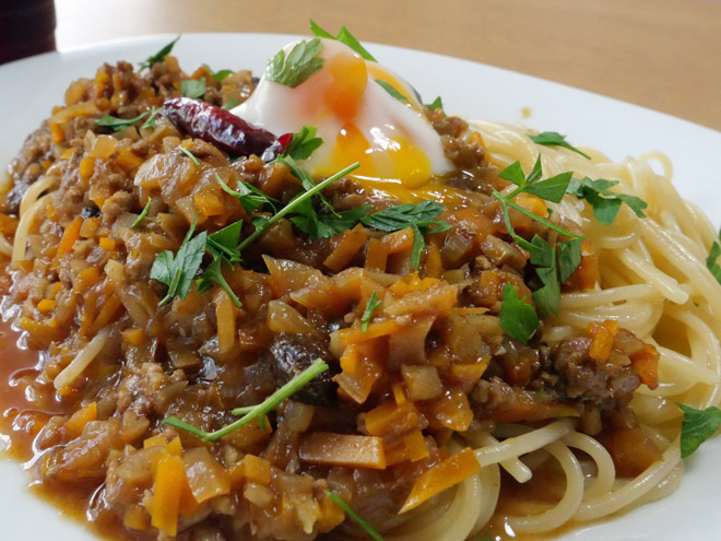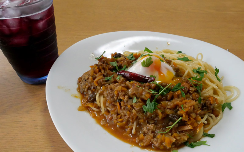 ドライカレーさえあれば、独り昼飯も簡単。相も変わらぬリメークパスタとなりました。