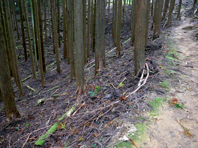 このあたりでヤマジノホトトギスの花と出会った記憶があります。咲いていないかなとゆっくり歩きましたが、だめでした。シーズンが過ぎたのか、枯れ枝が散乱していて環境が変わったせいでしょうか。