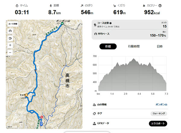 ポンポン山の頂上です。1時間半ほどで到達しました。まずまずのペースでした。