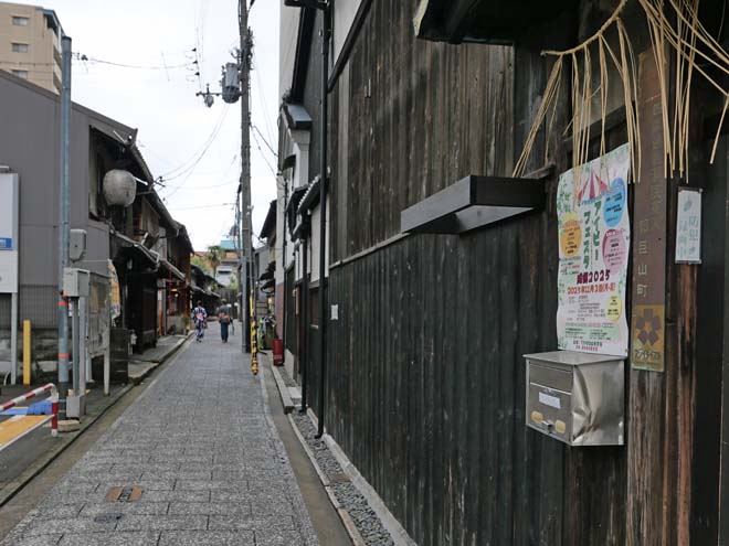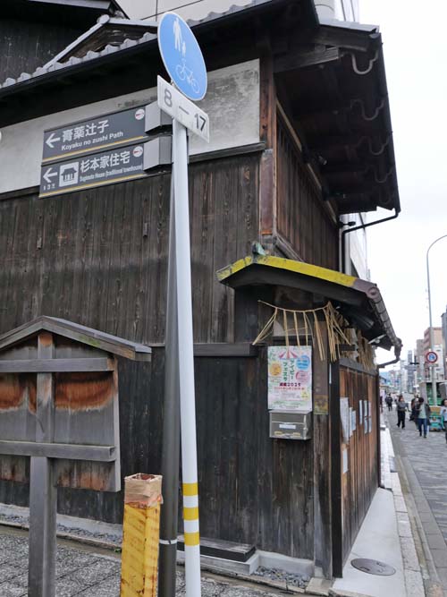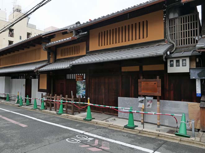 綾小路に面した杉本家住宅です。補修工事をしているようでした。