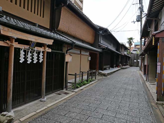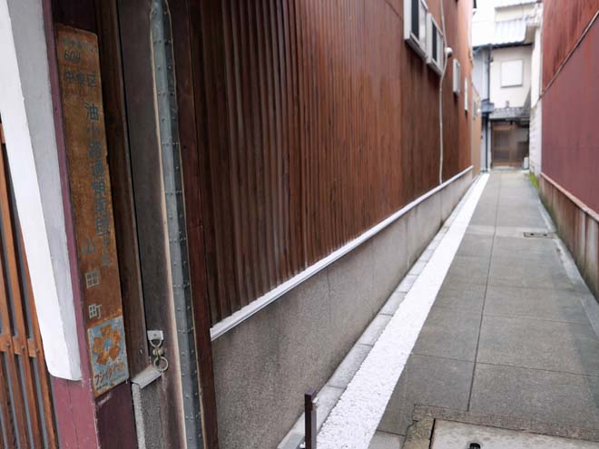 阪急・烏丸からちょっと西に歩いたところに祇園祭の郭巨山の保存庫があります。膏薬辻子の入口です。