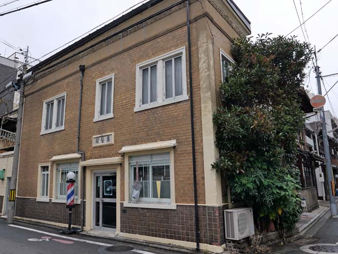 綾小路油小路に戻ると、角にクラッシックな理髪店がありました。