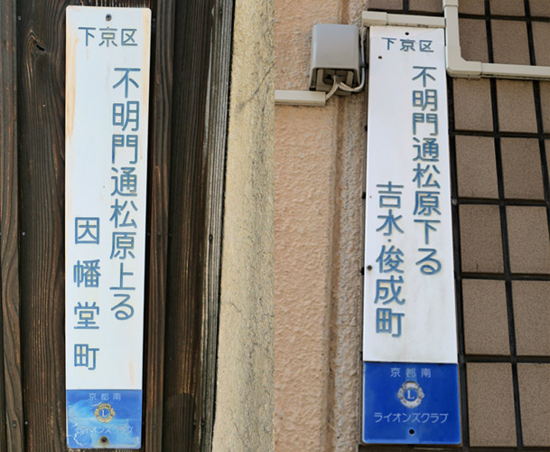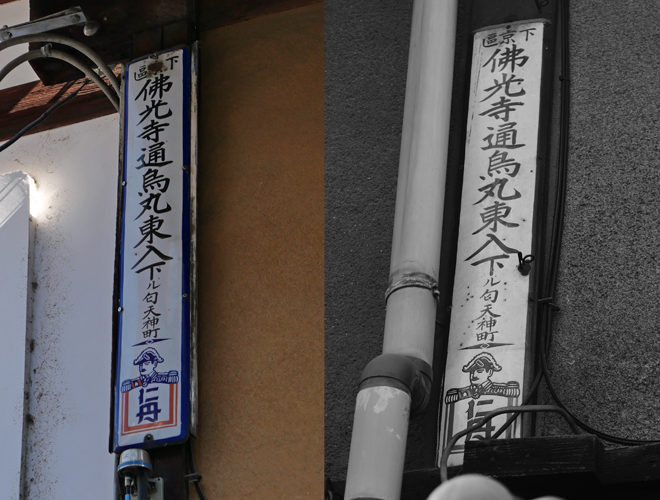 キョロキョロしながら歩くと「高辻通烏丸東入下ル匂天神町」とピタリ一致の看板が2枚もありました。