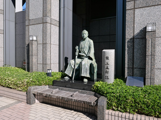 京都ホテルオークラの北西角に桂小五郎(木戸孝允)の像がありました。この辺りに長州藩邸がありました。