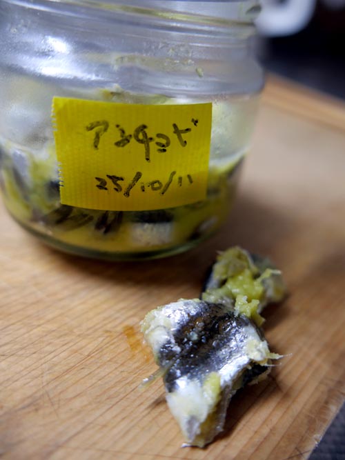 自家製ですから塩以外の添加物は一切なし。イワシも娘婿が大阪湾で釣ってきてくれたものですから安心です。