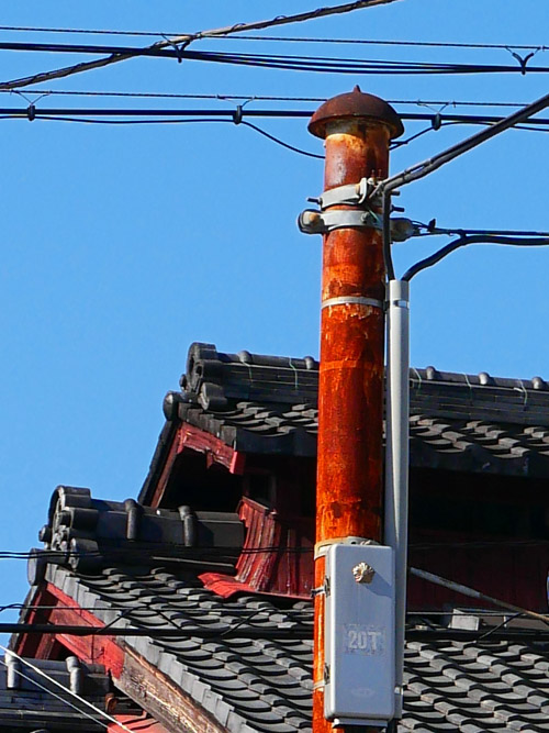 帽子をかぶったような頭の格好から京都市電の架線柱の名残でしょう。